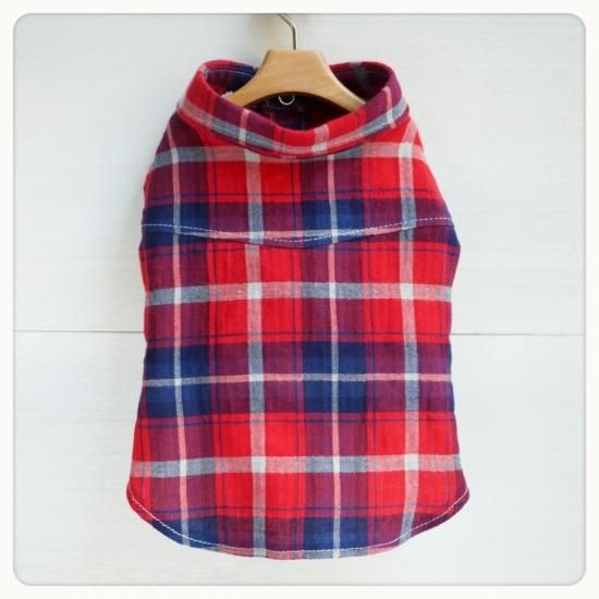 肌触りの良い綿100%のやや起毛タイプのヘリンボー ン織りチェック生地で作成したワンコ用の襟つきネルシャツです✨